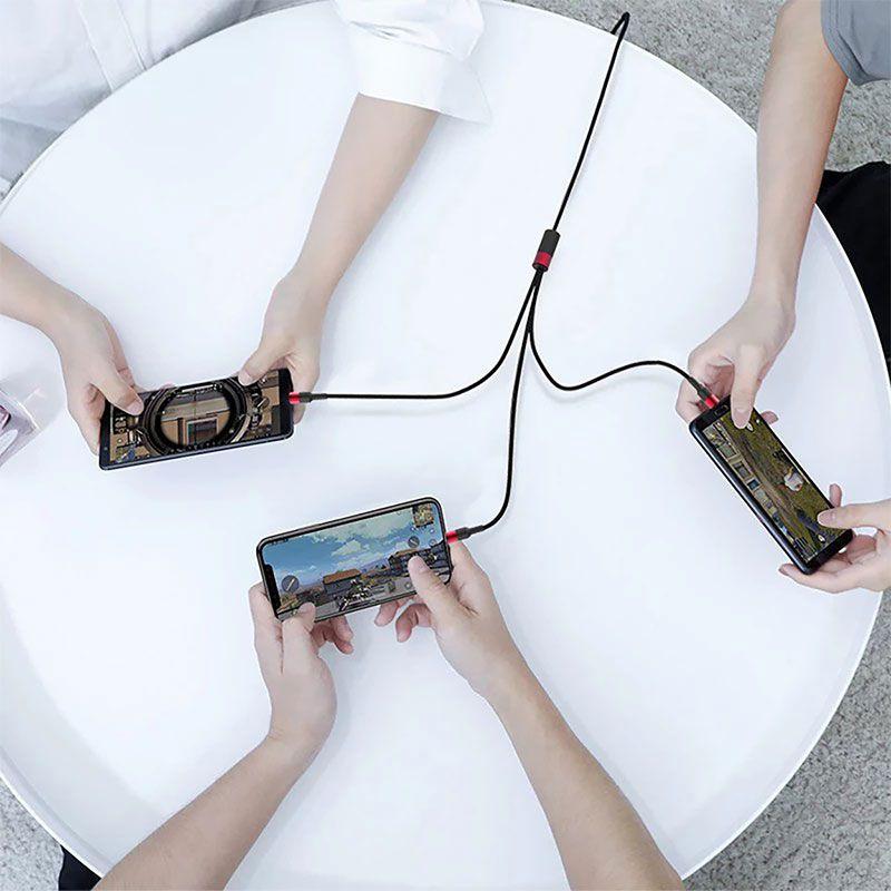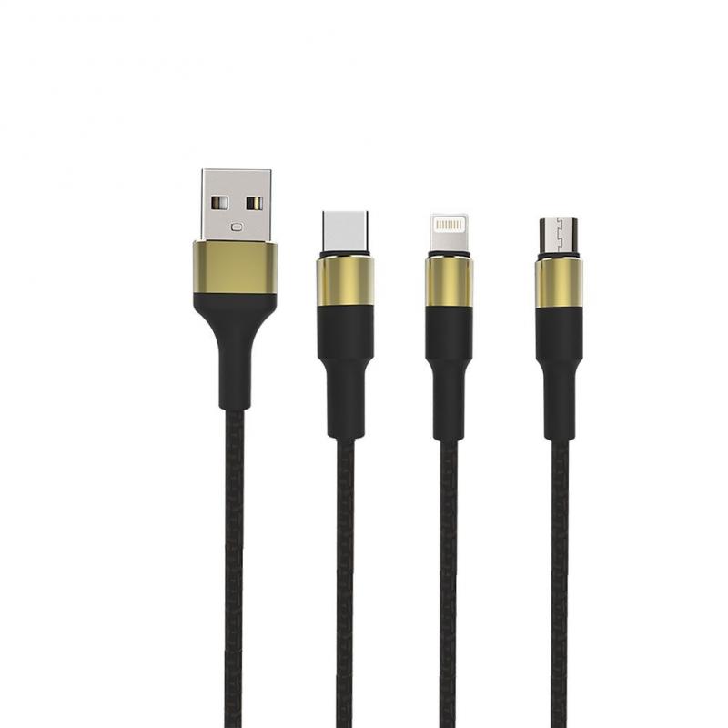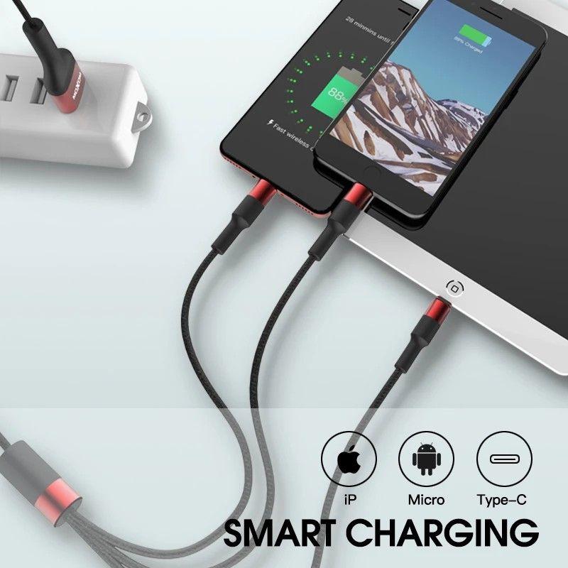 كيبل موكسوم CC 53 (3 في 1) مع كيبل إخراج 3 أمبير بطول 1.5 م لجميع الأجهزة المحمولة المتوافقة مع (Lightning / Micro-USB / Type-C). دعم النقل عالي السرعة، شحن سريع 3 أمبير. كيبل واحد يمكنه شحن 3 أجهزة بكفاءة عالية. قدرة قوية مضادة للأكسدة. تصميم عالي الجودة مع ملمس قماشي وأطراف مصنوعة من معدن النيكل. شكل وتفاصيل مميزة ومتناسقة. استقرار وسرعة وأمن في الشحن. مريحة وقوية ومرنة. تتوافق مع جميع الهواتف الذكية والتابلت والأجهزة التي تحتوي على منفذ من نوع Micro-USB أو Lightning أو TYPE-C.