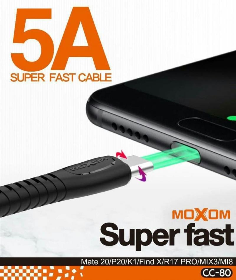 كيبل موكسوم CC 80، كيبل USB إلى Type-C فائق السرعة في الشحن. طول الكيبل: 1 م. مادة الكيبل: TPE. المخرجات: 5 أمبير سرعة شحن فائقة السرعة. مزامنة سريعة لنقل البيانات. الأجهزة المتوافقة: Type-C: Mate 20 / P20 / K1 / Find X / R17 PRO / MIX3 / MI8.