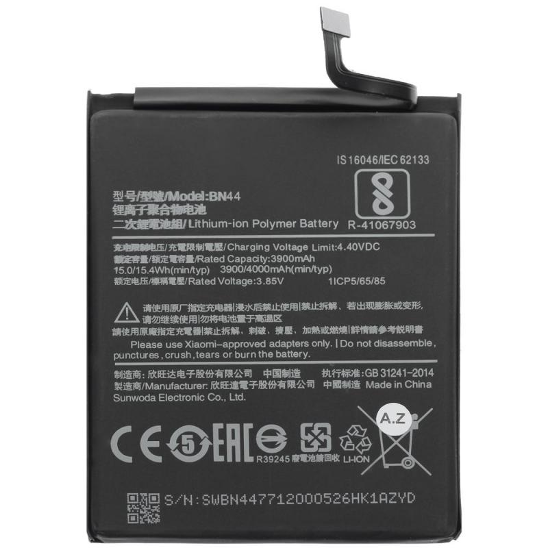 \الموديل: BN44. الجهد: 3.85 فولت. سعة البطارية: 4000 ملي أمبير. نوع البطارية: داخلية (غير قابلة للإزالة). متوافقة مع جهاز شاومي Redmi 5 Plus.