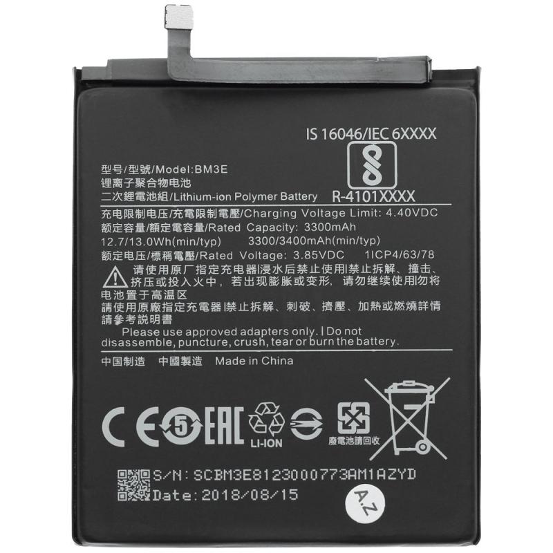 الموديل: BM3E. الجهد: 3.85 فولت. السعة: 3400 ملي امبير. نوع البطارية: داخلية (غير قابلة للإزالة). متوافقة مع جهاز شاومي Mi 8.