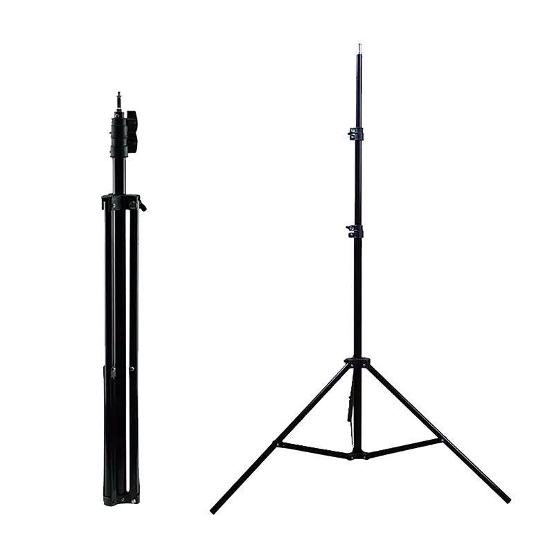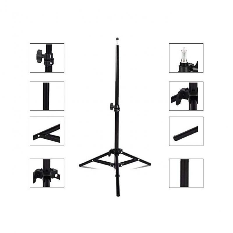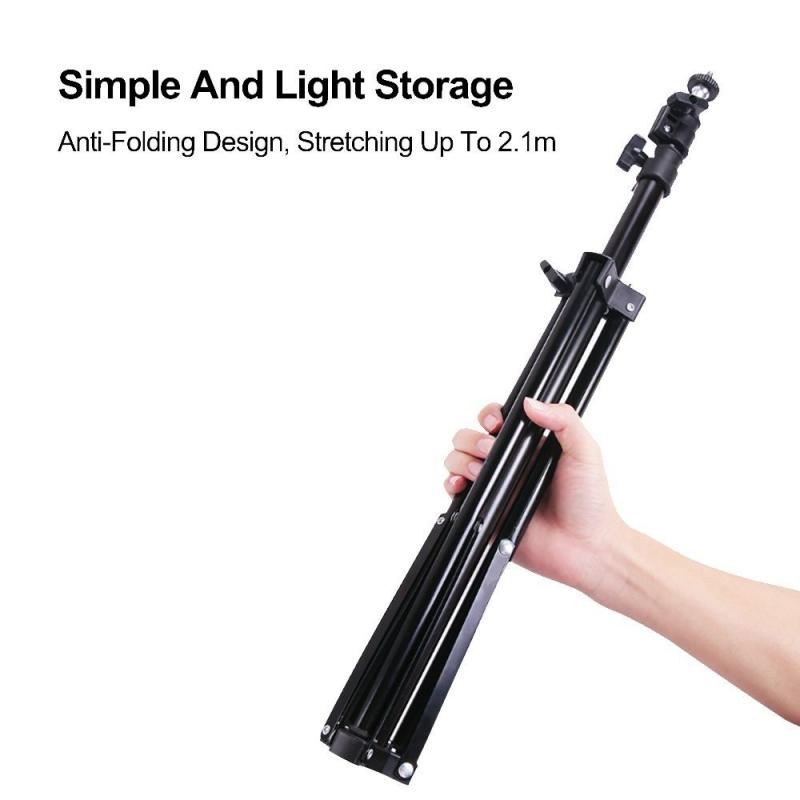 حمالة ring light طول الحامل الثلاثي 2.1 متر ليدعم أدوات الاستديو الصغيرة وإكسسوارات الإضاءة. الارتفاع قابل للتعديل من 75 سم إلى 210 سم. يدعم وزن أكثر من 5 كيلوجرام. الحامل الثلاثي خفيف الحجم وسهل التنقل. يدعم حمالة الهاتف مع إضاءة: 16 - 55 سم.