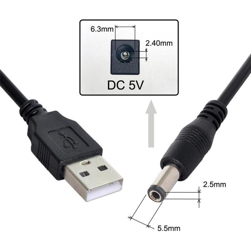 القابس: 2.5 ملم و5.5 ملم، USB. طول الكيبل: 1 م. الجهد: 5 فولت. متوافق مع: TV BOX، Receiver، Speaker، Radio.