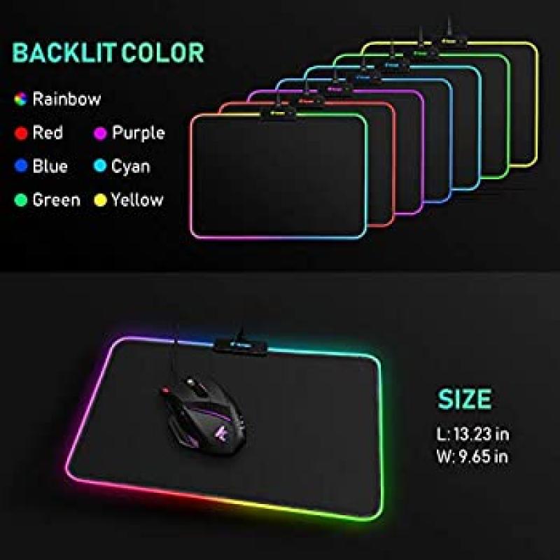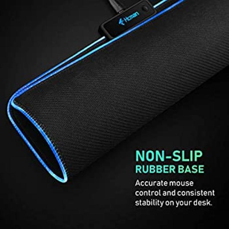 سجادة ماوس ألعاب RGB - 340 × 245 × 3 مم Hcman Led Mouseepad مع قاعدة مطاطية مانعة للانزلاق ، لوحة ماوس لوحة مفاتيح كمبيوتر ناعمة لأجهزة MacBook ، PC ، Laptop ، Desk