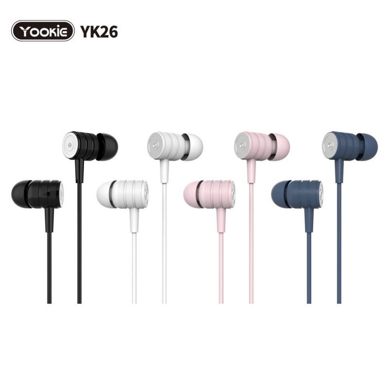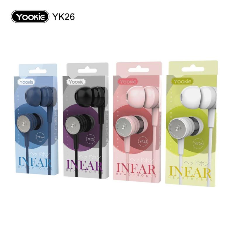 العلامة التجارية: YOOKIE. رقم الموديل: YK26. النوع: في الاذن. نوع الاتصال: 3.5 ملم. التوصيل: سلكي. طول الكيبل: 1.2 م. المادة: البلاستيك. مادة الكيبل: TPE. يتضمن ميكروفون: نعم. استجابة التردد: 20 هيرتز - 20 كيلو هيرتز. مقاومة السماعة اليمين واليسار: 18 اوم ± 10%. حساسية السماعة اليمين واليسار: 90 ± 3 ديسيبل. الطاقة: 30-60 ميجا واط. 28 قطعة / صندوق.