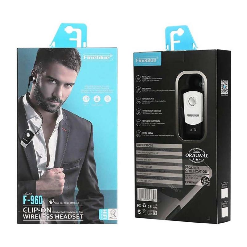 العلامة التجارية: FineBlue. الموديل: F960. إصدار البلوتوث: 4.1. البطارية: ليثيوم بوليمر -3.7 فولت، 80 ملي أمبير. وقت الشحن الكامل: ≤ 2 ساعة. وقت التحدث: 5 ساعات. وقت الانتظار: 80 ساعة. مسافة الإرسال: 10 م. الحساسية: 95 + / - 3DB. قوة الإرسال: الفئة 2 (-6 ديسيبل - 4 ديسيبل). مدى التردد: ism (2.402 جيجا هيرتز ~ 2.480 جيجا هيرتز). نوع السبيكر: ∅10. ميكروفون: -24 + / -3 ديسيبل. صوت عالي الدقة. يدعم تقنية متعددة النقاط مما يسمح بتوصيل هاتفين في نفس الوقت. عرض البطارية عند توصيل الهاتف. مناسب للهواتف المحمولة والأجهزة اللوحية المزودة بتقنية البلوتوث. جودة Hi-Fi. سماعة بلوتوث لاسلكية ستيريو. يساعد في تقليل الإشعاع أثناء الرد على المكالمات. يسمح لك بالرد بسهولة على المكالمات أو الاستماع إلى الموسيقى أثناء ممارسة الرياضة. اللون: اسود + ابيض، ابيض + اسود، ابيض + ذهبي، سلفر + اسود.