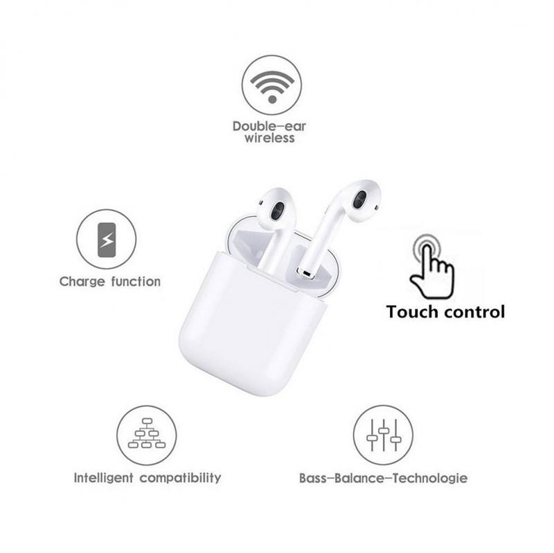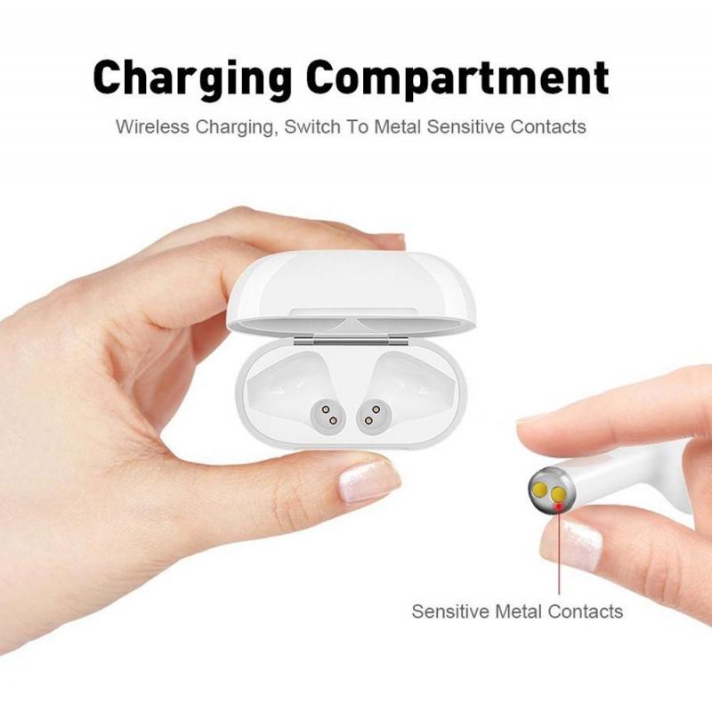 اقتران تلقائي. إصدار البلوتوث: V5.0 + EDR. المقاومة: 40 اوم. طاقة المخرج: 50 ميجا واط. مسافة عمل البلوتوث: 10م. استجابة التردد: 20 هيرتز – 20,000 هيرتز. جهد العمل: 3.0 – 4.2 فولت. وقت التحدث: حوالي 2.5 – 3.5 ساعة. يحتوي على مكبر صوت عالي الجودة (ستيريو عميق). متوافق مع جميع أجهزة البلوتوث تقريباً. اللون: رمادي غامق، ابيض، اصفر، وردي، اخضر، ازرق فاتح، ازرق غامق. العلبة تحتوي على: 2 × سماعات بلوتوث صغيرة. 1 × كيبل شحن USB. 1 × دليل المستخدم. 1 × صندوق الشحن.