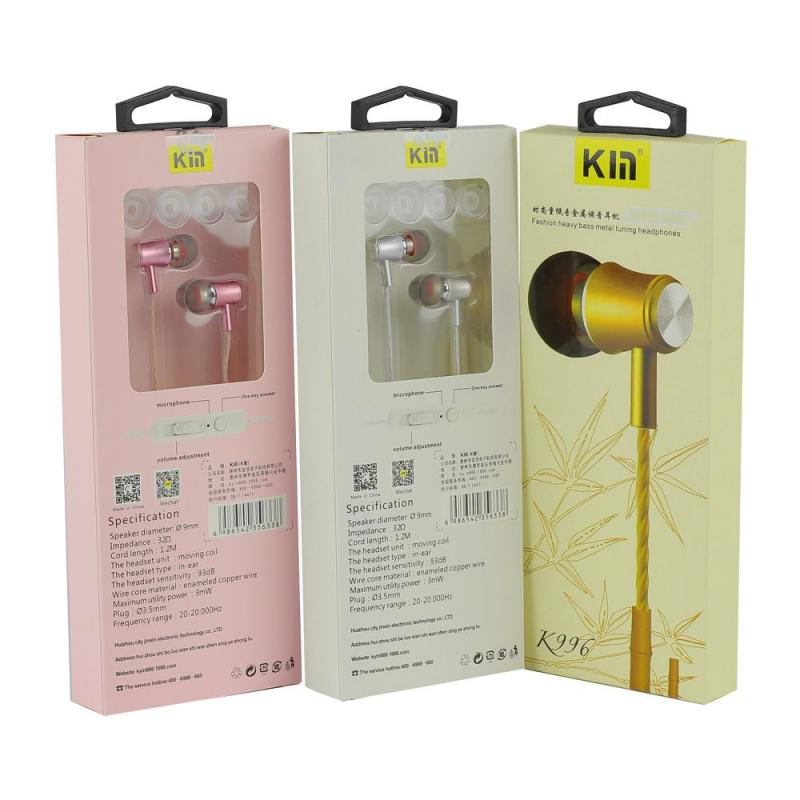 العلامة التجارية: KIN. الموديل: K-996. النمط: في الاذن. الاتصال: سلكي. نوع المدخل: 3.5 ملم. التردد: 20 – 20,000 هيرتز. المقاومة: 16 اوم. الحساسية: 96± ديسيبل. المهام التي تقدمها السماعة: مشغل MP3، ميكروفون، الإجابة على الهاتف. متوافق مع: أجهزة الهواتف، الكمبيوتر، مشغل الوسائط المحمول، DJ. اللون: ازرق، ذهبي، فضي، زهري.