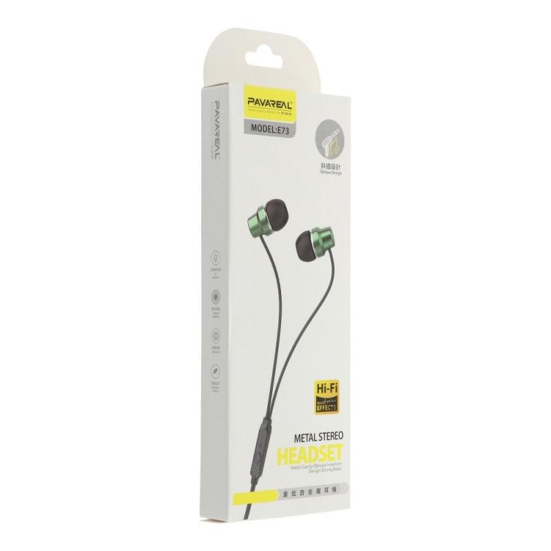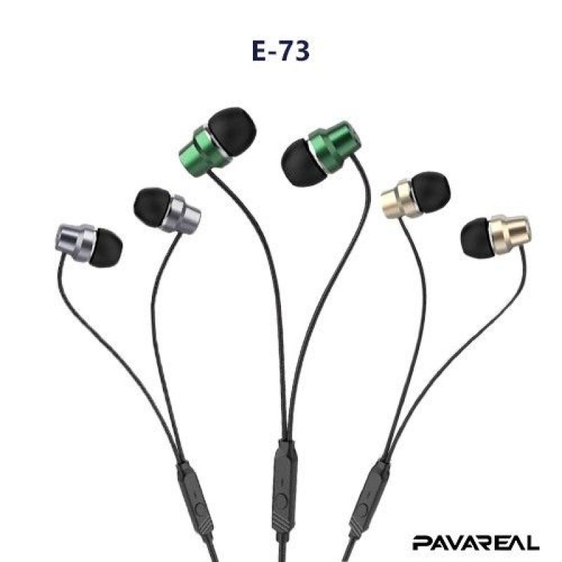 العلامة التجارية: PAVAREAL. الموديل: PA-E73. نوع الاتصال: سلكي. المدخل: 3.5 ملم. طول الكيبل: 1.2 م. حساسية الصوت: 102 ± 3 ديسيبل. المقاومة: 32 اوم. مؤثرات صوت Hi-Fi. ميكروفون HD. مريحة في الارتداء. الصوت المحيطي. الألوان: فضي، ذهبي، اخضر.