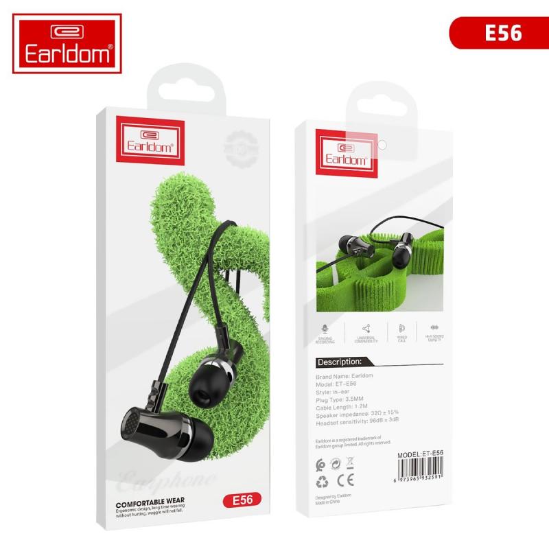 العلامة التجارية: Earldom. الموديل: ET-E56. نوع الاتصال: سلكي. التوصيل: 3.5 ملم. المقاومة: 32 اوم ± 15٪. حساسية الصوت: 96 ± 3 ديسيبل. طول الكيبل: 1.2 م. مكالمات بصوت عالي الجودة. جودة صوت Hi-Fi. متوافقة مع أي مقبس صوت مقاس 3.5 ملم. اللون: اسود.