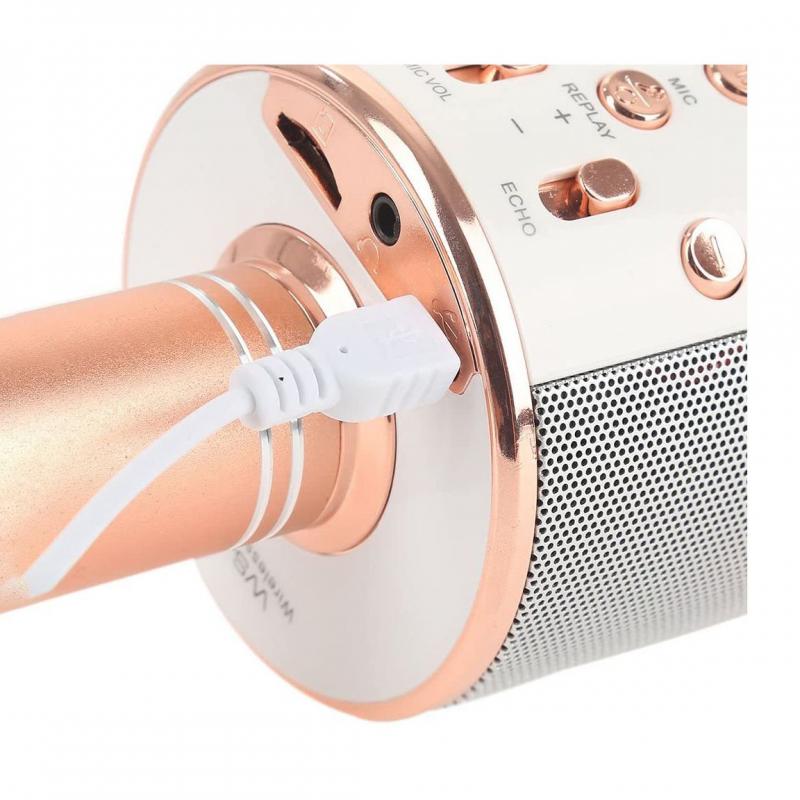 لاسلكي. الطاقة: 5 واط. نطاق التردد: 100 هيرتز ~ 10 كيلو هيرتز. الحد الأقصى لمستوى ضغط الصوت: < 115. %1> TDH 1KHz db وضع الصدى: صدى تأثير الصوت. مزود الطاقة: بطارية ليثيوم مدمجة 18650. سعة البطارية: 1800 ملي أمبير. قوة الشحن: DC5V. اللون: ذهبي، اسود، سلفر، روز جولد، ازرق، وردي. تتضمن العبوة: 1 × ميكروفون 1 × كيبل شحن 1.