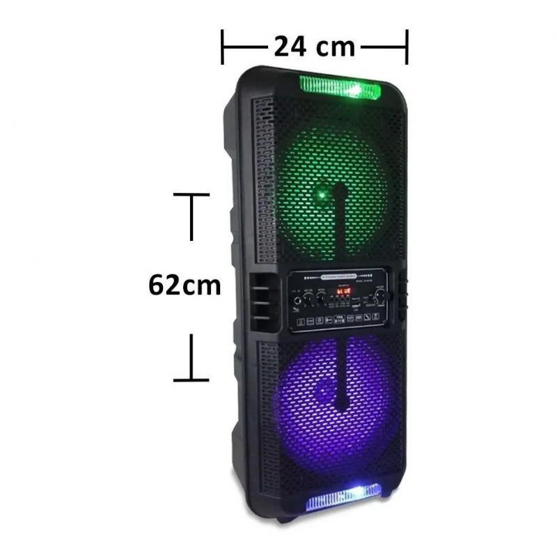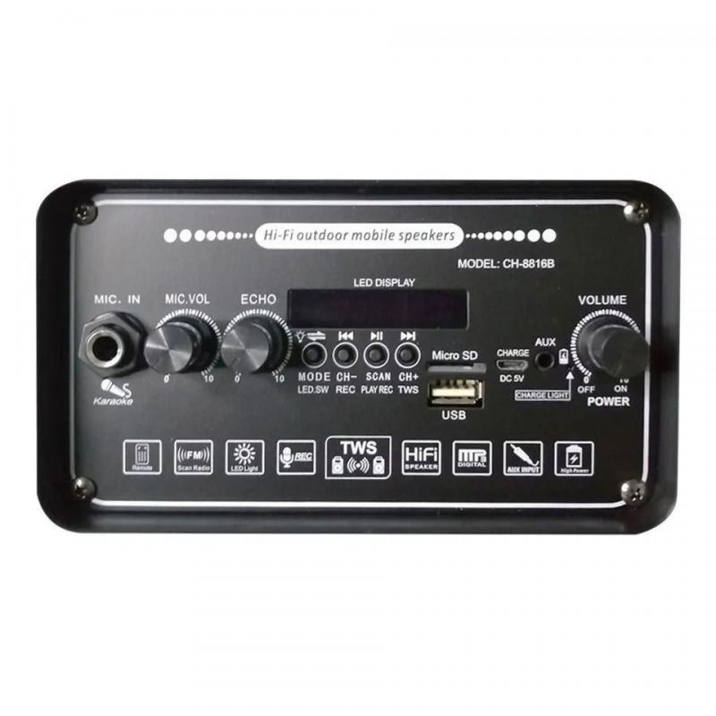 الموديل: CH-8816B. راديو USB / TF / FM / BT. جهاز التحكم. شاشة LED / إدخال الصوت. إضاءة مصباح ديسكو. ميكروفون للكاريوكي. الشحن: DC 5V. الوزن الصافي: 3.1 كغم. الوزن الإجمالي: 3.7 كغم. حجم الحزمة: 253 × 203 × 603 ملم.