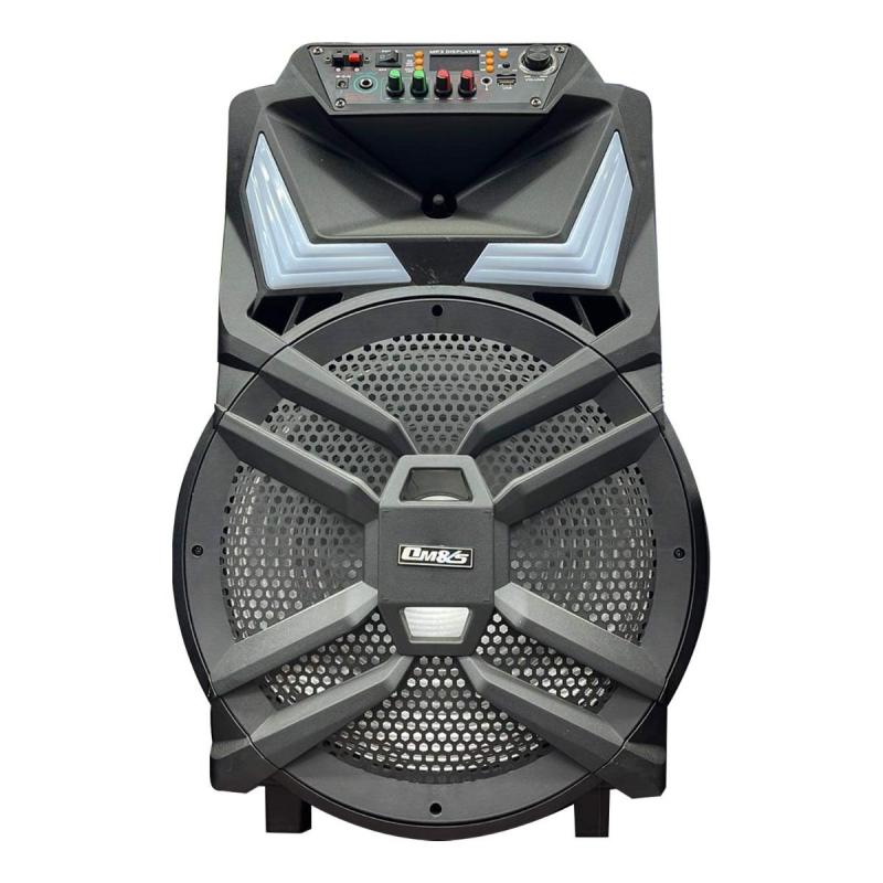 الموديل: OM-K23. حجم السبيكر: 15 انش. راديو/بلوتوث/USB/TF/FM. مدخل: 6.3 ملم. إصدار البلوتوث: 2.1. يعمل حتى مسافة 10 م. يدعم 3 مكبرات صوت. جهد المخرج: 100-240 فولت، 50/60 هيرتز. البطارية المدمجة: 2400 ملي أمبير. وقت الشحن: 4-8 ساعات. وقت التشغيل: 5 ساعات. يحتوي على شاشة LED/ مدخل صوت. مدخل ميكروفون للكاريوكي. جهاز تحكم عن بعد.