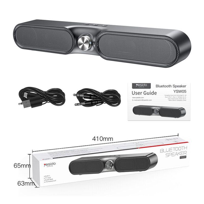العلامة التجارية: YESIDO. الموديل: YSW05. إصدار البلوتوث: V5.0. طريقة الاتصال: لاسلكي. مسافة الاتصال: 10م. وضع مصدر الطاقة: تيار مستمر 5 فولت. سعة البطارية: 2400 ملي أمبير. وقت شحن البطارية: حوالي 3 ساعات. وقت تشغيل الموسيقى: 8-10 ساعات (بحجم صوت حوالي 80٪). وقت التحدث: > 16 ساعة (بحجم صوت حوالي 90٪). الطاقة القصوى: 2 * 5 واط. تأثير صوت ستيريو رباعي الأبعاد، يقدم جودة صوت ممتازة. مضاد للمغناطيس، يقلل من الضوضاء، يجلب صوتاً واضحاً.