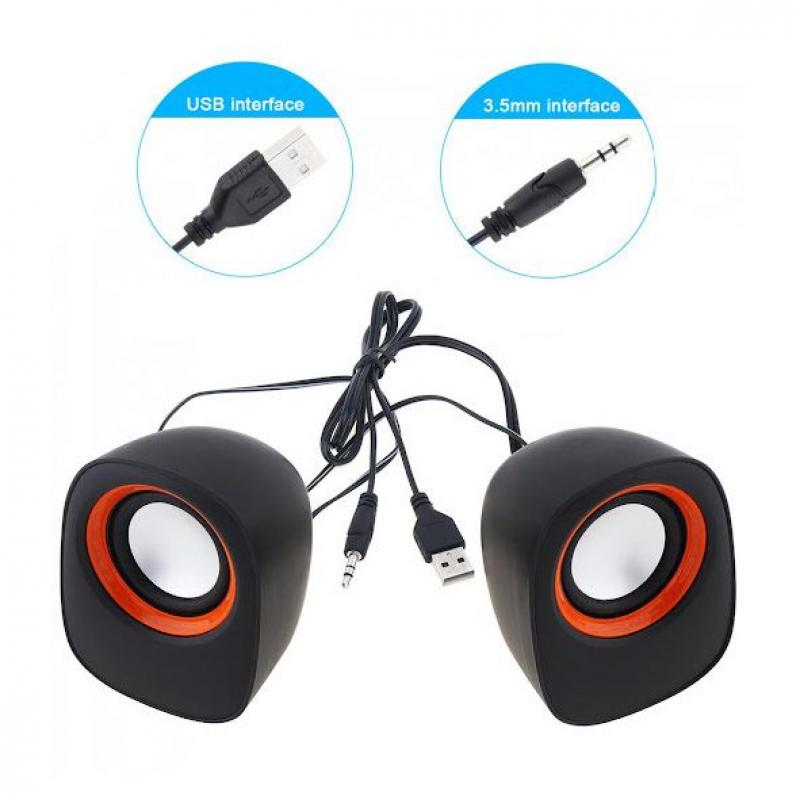 الموديل: D05A. القدرة: 0.5 × 2 واط. الجهد: 5 فولت. USB إلى 3.5 ملم. جودة صوت نقية وأنيقة. تصميم صغير ومحمول، سهل الحمل. متوافق مع سطح المكتب، اجهزة الكمبيوتر المحمولة، MP4 ،MP3.