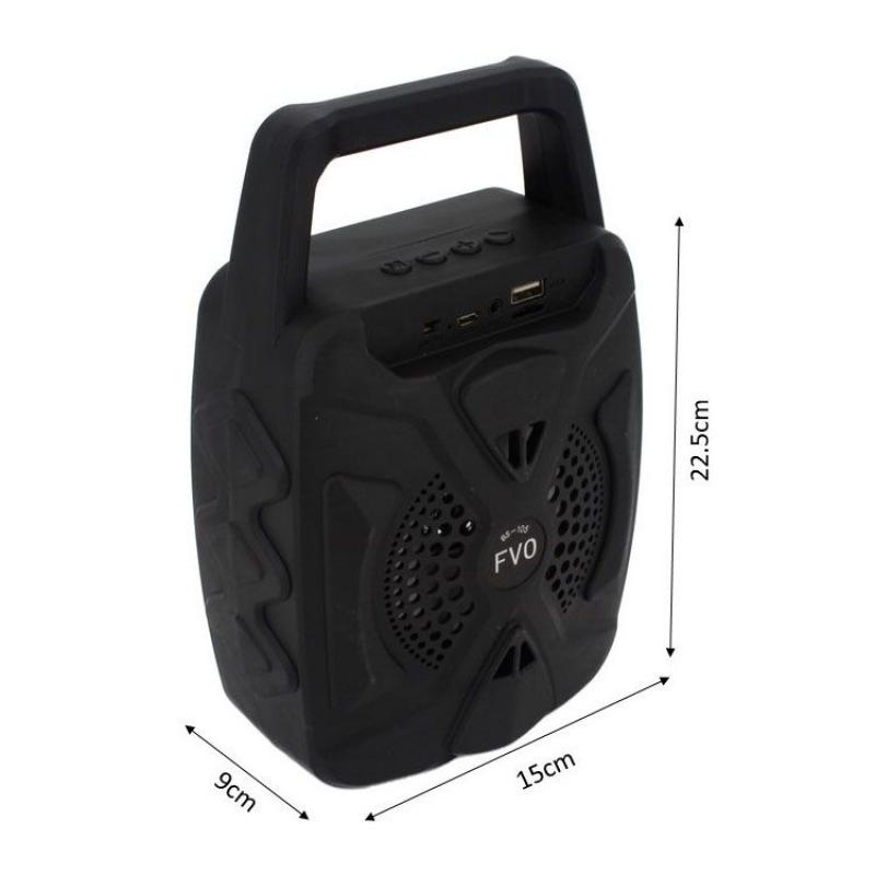 العلامة التجارية: FVO. إصدار البلوتوث: 5.0V. مسافة الاتصال: 10 متر. طاقة المخرج: 5 انش 5 واط. جهد المدخل: 1000 ملي أمبير، DC5V. وقت التشغيل: 2-4 ساعات. وقت الشحن: 2-3 ساعات. وزن المنتج: 425 جرام. أبعاد المنتج: 150 × 93 × 225 ملم.