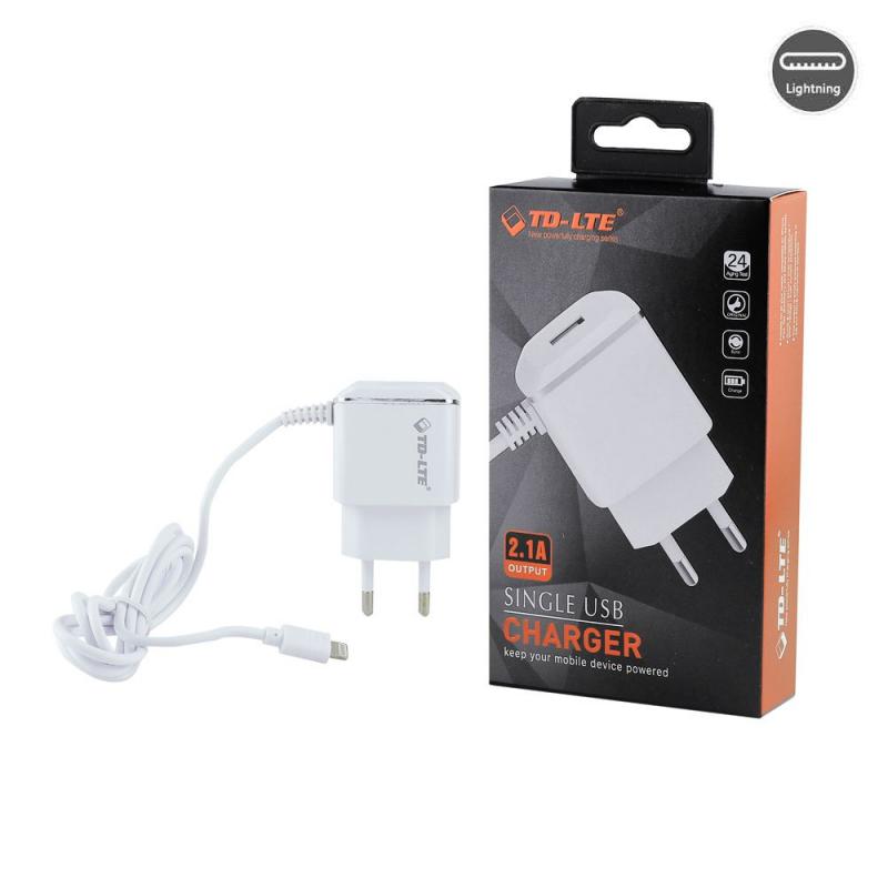 الموديل: TD-T67. الطول: 1 م. المدخلات: 110-240 فولت، 50-60 هيرتز. المخرجات: AC5V / 2.4A. منفذ (USB): 1 منفذ. درجة حرارة العمل: -10 درجة مئوية ~ 50 درجة مئوية. يتوافق مع أجهزة Type-C، Lightning، Micro-USB وUSB. نوع المحول: EU Plug. هناك ثلاثة أنواع متاحة: Lightning Micro-USB Type-C