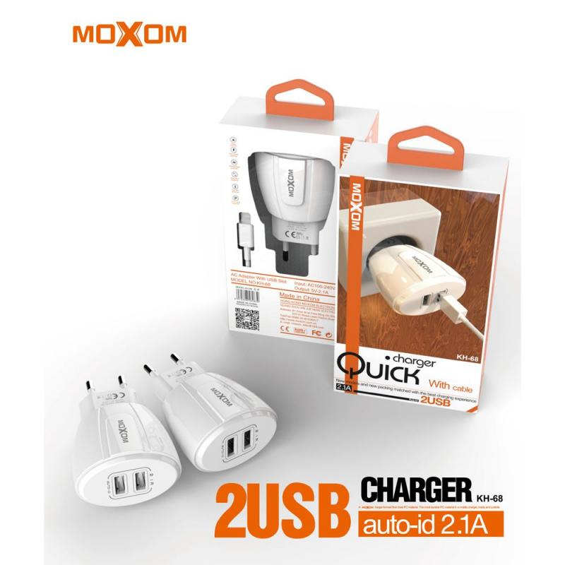 الموديل: MX-KH68. الطول: 1 متر. المدخلات: تيار متردد 100-240 فولت، 50-60 هيرتز. المخرجات: 5 فولت / 2.1 أمبير. منفذ (USB): 2 منفذ. يتوافق مع: أجهزة Micro-USB، Type-C، Lightning. نوع المحول: EU Plug. هناك ثلاثة أنواع متاحة: Micro-USB Type-C Lightning