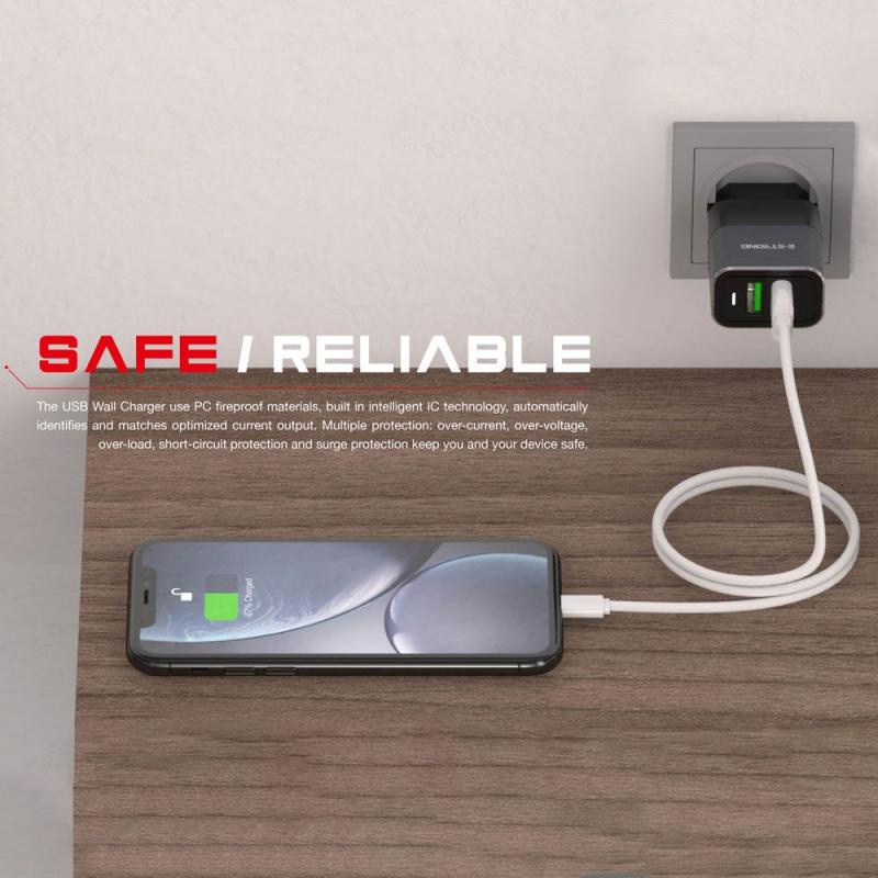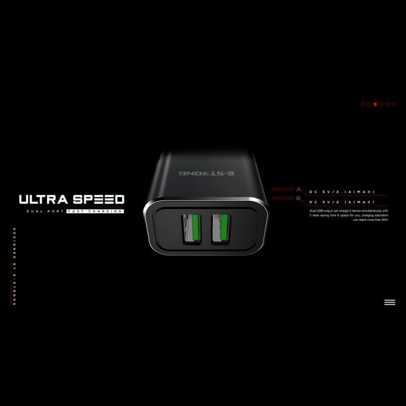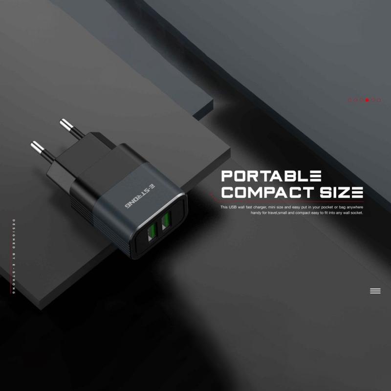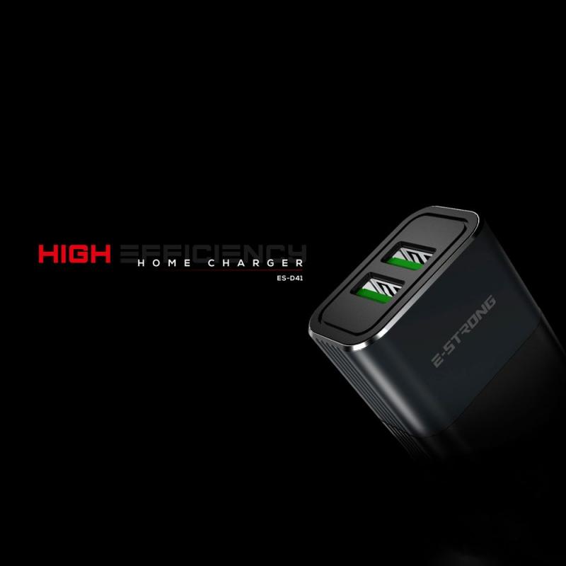 العلامة التجارية: E-Strong. الموديل: ES-D41. مدخلات: 100-240 فولت - 50/60 هيرتز. مخرجات: تيار مستمر 5 فولت - 2.1 أمبير (بحد أقصى). دعم التوصيل: US / EU /IN.