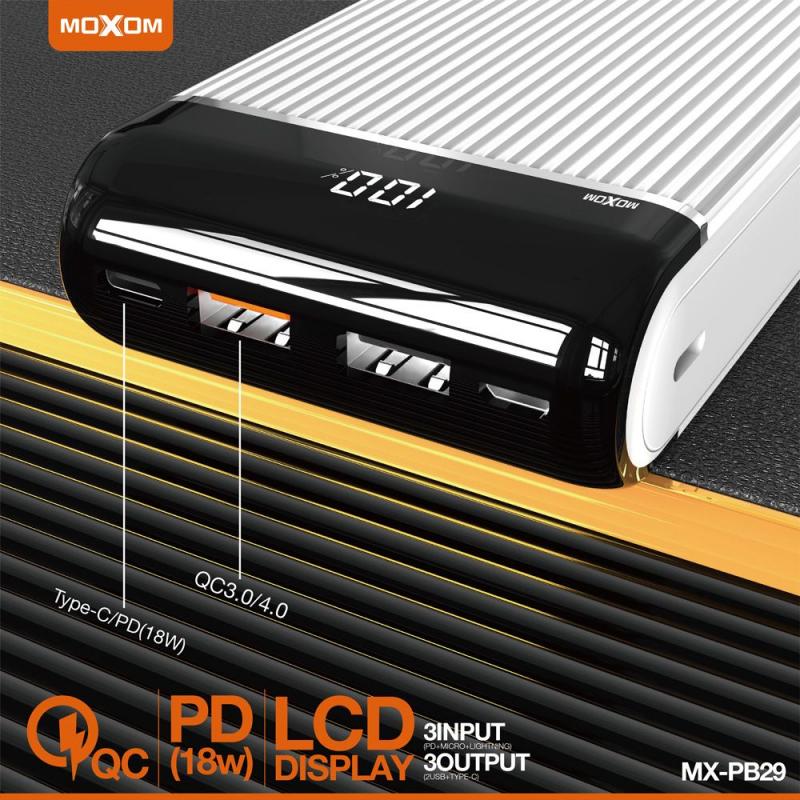 سعة عالية 20000 ملي أمبير/ ساعة. جودة عالية. زر ايقاف وتشغيل محمول قابل للنقل خفيف الوزن. شاشة LCD. فائق السرعة في الشحن. يدعم تقنية كوالكوم فائقة السرعة. يدعم خاصية الشحن الآمن AUTO-ID يقوم تلقائيًا باكتشاف الجهاز المتصل وشحنه بأسرع سرعة مناسبة للجهاز. يحتوي على كيبل Micro-USB. 3 مداخل: منفذ مايكرو 5V-2A / 9V-2A :USB (S4). منفذ 5V-2.4A :Lightning (iPhone). منفذ (S8) Type-C : يدعم تقنية الشحن فائق السرعة بقوة 18 واط 5V-3A / 9V-2A / 12V-1.5A. 3 مخارج: منفذ USB1: يدعم تقنية كوالكوم فائقة السرعة في الشحن 5V-1A / 5V-2A / 5V-3A / 9V-2A / 12V-1.5A QC3.0. منفذ USB2: يدعم تقنية الشحن السريع 5V-3A / 9V-2A / 12V-1.5A. منفذ Type-C: يدعم تقنية الشحن فائق السرعة بقوة 18 واط. متوافق مع جميع الهواتف الذكية والأجهزة اللوحية، وقوي بما يكفي لشحن 3 أجهزة في نفس الوقت ويمكنه شحن أجهزة الكمبيوتر المحمولة (MacBook) أو كمبيوتر محمول USB من Type-C بشحن سريع 18 واط.