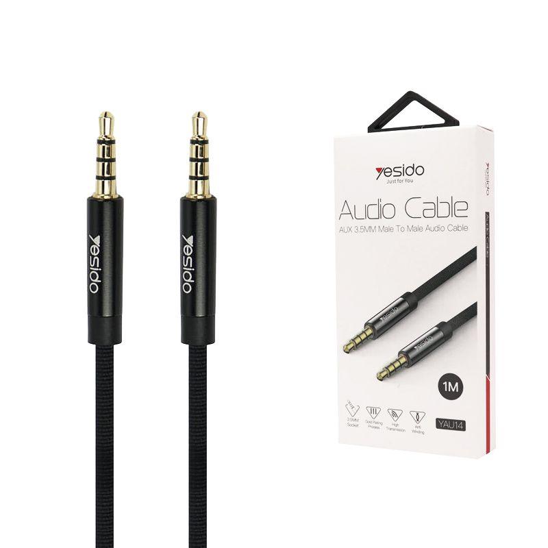 كيبل صوت AUX من YESIDO بمقبس 3.5mm إلى 3.5mm، بطول 1م. طول الكيبل: 1م. المقبس: 3.5 ملم. المقبس الذهبي مقاوم للصدأ. مناسبة لجميع أنواع الأجهزة المزودة بمقبس 3.5 ملم. مناسب لـ: سبيكرات/ سيارات/ أجهزة صوتية/ هدفون. اللون: أسود.